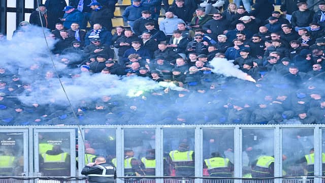 De aftrap van de Eredivisie-wedstrijd tussen Go Ahead Eagles en PEC Zwolle is zondag ruim anderhalf uur uitgesteld. Een deel van de PEC-aanhang droeg gezichtsbedekkende kleding en weigerde het stadion te verlaten.