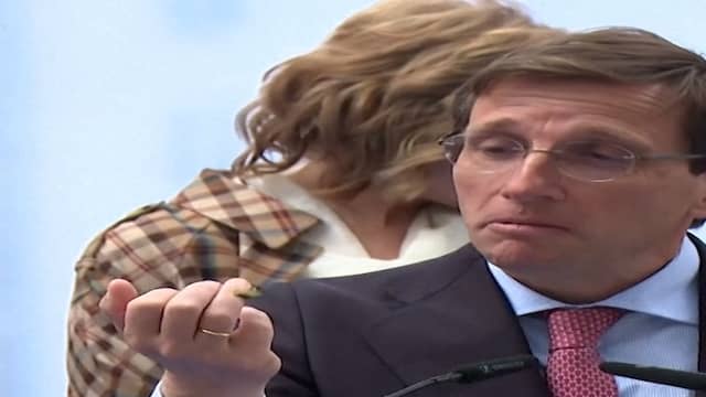 Video | Vogel poept op hoofd Madrileense burgemeester tijdens toespraak